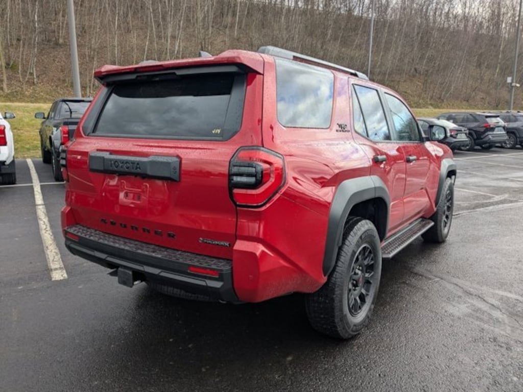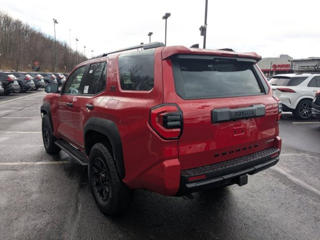 Tow Technology Package, TRD Offroad Premium Package, 2.4L I4 FI Hybrid Turbocharged DOHC 16V, 15 Speakers, 4-Wheel Disc Brakes, 4Runner All Weather Cargo Tray (TMS), 4Runner All Weather Floor Mats (TMS), ABS brakes, Air Conditioning, Alloy wheels, AM/FM radio: SiriusXM, Anti-whiplash front head restraints, Apple CarPlay/Android Auto, Auto High-beam Headlights, Automatic temperature control, Black Front Emblem Badge Overlay (TMS), Brake assist, Bumpers: body-color, Driver door bin, Driver vanity mirror, Dual front impact airbags, Dual front side impact airbags, Electronic Stability Control, Emergency communication system: Safety Connect (1-year trial), Exterior Parking Camera Rear, Front anti-roll bar, Front Bucket Seats, Front Center Armrest, Front Color Keyed Door Edge Guards (TMS), Front dual zone A/C, Front fog lights, Front reading lights, Front wheel independent suspension, Heated & Ventilated Front Bucket Seats, Heated door mirrors, Illuminated entry, Interior D-Pillar Cargo Lights (TMS), Knee airbag, Leather Shift Knob, Leather steering wheel, Low tire pressure warning, Memory seat, Moonroof, Navigation System, Occupant sensing airbag, Outside temperature display, Overhead airbag, Overhead console, Panic alarm, Passenger door bin, Passenger vanity mirror, Power door mirrors, Power driver seat, Power passenger seat, Power steering, Power windows, Prewired Auxiliary Switches, Radio: 14" Audio, Rear anti-roll bar, Rear seat center armrest, Rear side impact airbag, Rear window defroster, Rear window wiper, Remote keyless entry, Security system, SofTex Seat Trim, Speed control, Speed-sensing steering, Split folding rear seat, Spoiler, Steering wheel mounted audio controls, Tachometer, Telescoping steering wheel, Tilt steering wheel, Traction control, Trip computer, USB Phone Charging Cable Kit (TMS), Variably intermittent wipers, Wheels: 18" Accessory TRD Black (TMS), and Wheels: 18" Matte-Black Painted Alloy. *Your additional costs are sales tax, tag and title fees for the state in which the vehicle will be registered, any dealer-installed options (if applicable) and a dealer processing fee ($800 Maryland; not required by law); ($477 Pennsylvania). Prices are subject to change, and prior sales are excluded from these offers. While every reasonable effort is made to ensure the accuracy of this information, we are not responsible for any errors or omissions contained on these pages. Please verify any information in question with the dealer.