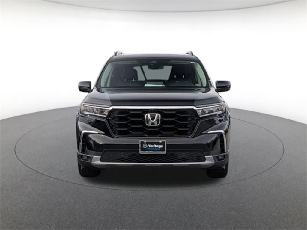 Balance of Factory Warranty, AWD, Honda Satellite-Linked Navigation System, Navigation system: Honda Satellite-Linked Navigation System, Power Liftgate, Power moonroof, 12 Speakers, 3rd row seats: split-bench, 4-Wheel Disc Brakes, 4.167 Axle Ratio, ABS brakes, Adaptive Cruise Control: Adaptive Cruise Control (ACC) with Low-Speed Follow, Air Conditioning, Alloy wheels, AM/FM radio: SiriusXM, Apple CarPlay/Android Auto, Auto High-beam Headlights, Auto-dimming door mirrors, Auto-dimming Rear-View mirror, Automatic temperature control, Blind Spot Information (BSI) System warning, Bose Premium Sound System, Brake assist, Bumpers: body-color, Compass, CONTROL, Cruise Control, Delay-off headlights, Driver door bin, Driver vanity mirror, Dual front impact airbags, Dual front side impact airbags, Electronic Stability Control, Emergency communication system: HondaLink, Exterior Parking Camera Rear, Four wheel independent suspension, Front anti-roll bar, Front Bucket Seats, Front Center Armrest, Front fog lights, Front reading lights, Fully automatic headlights, Garage door transmitter: HomeLink, Heads-Up Display, Heated & Ventilated Front Bucket Seats, Heated door mirrors, Heated front seats, Heated rear seats, Heated steering wheel, HondaLink Subscription Services, Illuminated entry, Knee airbag, Lane departure: Lane Keeping Assist System (LKAS) active, Low tire pressure warning, Memory seat, Occupant sensing airbag, Outside temperature display, Overhead airbag, Overhead console, Panic alarm, Passenger door bin, Passenger vanity mirror, Perforated Leather Seat Trim, Power door mirrors, Power driver seat, Power passenger seat, Power steering, POWER WINDOWS, power windows, Radio data system, Rain sensing wipers, Rear air conditioning, Rear anti-roll bar, Rear reading lights, Rear seat center armrest, Rear window defroster, Rear window wiper, Reclining 3rd row seat, Remote keyless entry, Security system, SiriusXM, Speed-sensing steering, Speed-Sensitive Wipers, Split folding rear seat, Spoiler, Tachometer, Telescoping steering wheel, Tilt steering wheel, Traction control, Trip computer, Turn signal indicator mirrors, Variably intermittent wipers, Ventilated front seats, and Wheels: 20" Shark Gray Machine Face w/Blk Lug Nuts.