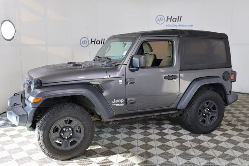 Clean CARFAX. Granite Crystal Metallic Clearcoat 2018 Jeep Wrangler Sport 4WD 8-Speed Automatic 3.6L V6 24V VVT Wrangler Sport, 2D Sport Utility, 3.6L V6 24V VVT, 8-Speed Automatic, 4WD, Granite Crystal Metallic Clearcoat, Tan Cloth, We are currently offering Vehicle Purchase Home Delivery by appointment. Please contact for details., Quick Order Package 24B.