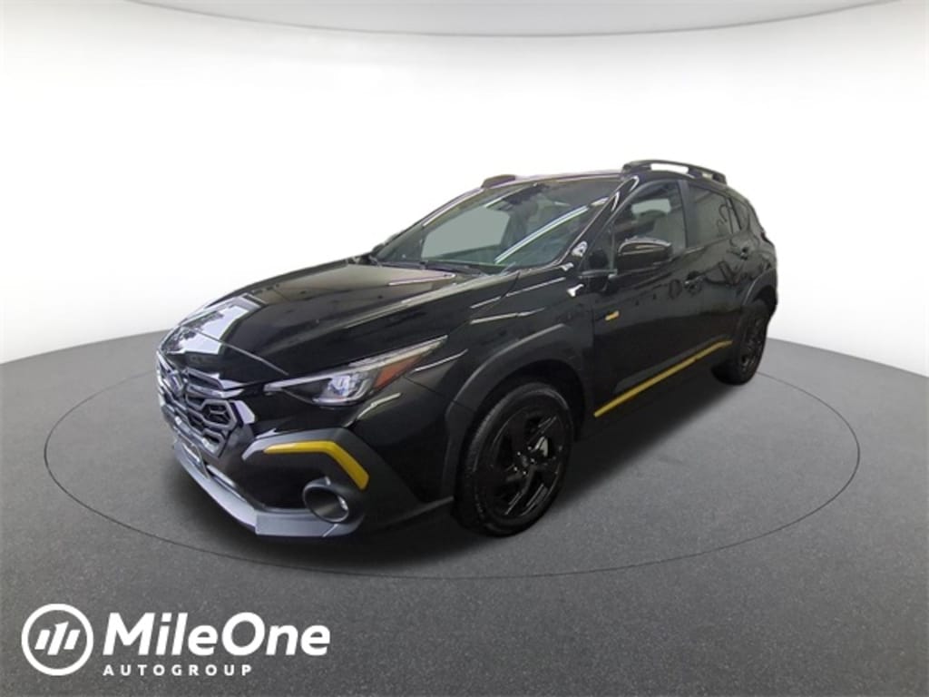 BSD/RCTA & Power Driver Seat & Power Moonroof (10-Way Power Driver's Seat, Blind Spot Detection (BSD), Power Moonroof, and Rear Cross-Traffic Alert (RCTA) System), Crosstrek Mirror Package (Auto-Dimming Exterior Mirror w/Approach Light and Auto-Dimming Mirror w/Compass & HomeLink), Balance of Factory Warranty, 4-Wheel Disc Brakes, 6 Speakers, ABS brakes, Air Conditioning, Alloy wheels, AM/FM radio: SiriusXM, Anti-whiplash front head restraints, Auto High-beam Headlights, Automatic temperature control, Brake assist, Dual front impact airbags, Dual front side impact airbags, Electronic Stability Control, Emergency communication system, Exterior Parking Camera Rear, Four wheel independent suspension, Front Bucket Seats, Front Center Armrest, Front dual zone A/C, Front fog lights, Fully automatic headlights, Heated door mirrors, Heated Front Bucket Seats, Heated front seats, Outside temperature display, Overhead console, Panic alarm, Power door mirrors, Radio data system, Radio: Subaru 11.6" Multimedia Plus System, Rear window defroster, Rear window wiper, Remote keyless entry, Security system, Speed control, Speed-sensing steering, Split folding rear seat, Sport Cloth Upholstery, Steering wheel mounted audio controls, Tachometer, Telescoping steering wheel, Tilt steering wheel, Traction control, Trip computer, Turn signal indicator mirrors, Variably intermittent wipers, Wheels: 18" x 7.0" J Dark Gray Aluminum-Alloy, Bumpers: body-color, Driver door bin, Driver vanity mirror, Front anti-roll bar, Front reading lights, Illuminated entry, Knee airbag, Leather Shift Knob, Leather steering wheel, Low tire pressure warning, Occupant sensing airbag, Overhead airbag, Passenger door bin, Passenger vanity mirror, Power steering, Power windows, Rear anti-roll bar, Rear Bumper Cover, Rear seat center armrest, and Spoiler.